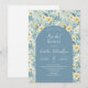 Boho arch watercolor yellow dusty blue wildflowers invitation
