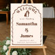 With warm tones and a unique arch shape, this boho welcome sign is made for nature-inspired weddings. Perfect for outdoor ceremonies, desert themes, or rustic venues.