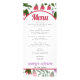 Boho arch and colourful retro flowers weddingmenu card. This wedding menu card features a bohemian arch and behind it, there are whimsical folklore branches with colourful blooms in shades of dark and sage green, peach, vivid magenta, and lilac purple. The word 'Menu' is prominently displayed in bold typography, adding a modern touch to the overall design.