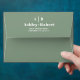 Boho arch with retro branches and flowers sage green wedding envelope. Inside the envelope, you'll find branches with dark and sage green leaves, along with magenta and pink flowers, all designed in a folklore boho retro style. The outside is of sage green colour. To add a personal touch, the flap is customised with the couple's names and address in bold typography, making it a unique and stylish choice for their special day.