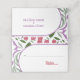 The wedding escort place card features a vibrant retro folklore floral design, showcasing a beautiful mix of colours including dark and sage green, peach, viva magenta, and lilac purple. The frame of the card is in front of retro folklore branches, adding a whimsical touch to the overall aesthetic. Standing out in bold typography are the names of the couple, adding a personalised and elegant element to the design. The combination of the colourful flowers and the bold text creates a visually appealing and unique escort card that is sure to impress guests at the wedding.