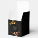 Set against a striking black background, this favour box features apricot-coloured text that provides a warm and inviting touch. Delicate leaves in soft muted earth tones and earthy autumnal copper shades evoke the cosy charm of autumn, while the geometric frame in burnt orange and terracotta adds a rustic yet sophisticated flair. This favour box perfectly complements your autumn-themed wedding, capturing the essence of a bohemian chic celebration. This favour box radiates warmth and elegance, reflecting the romantic and modern minimalism of your special day.