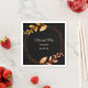 Set against a striking black background, this Napkins features apricot-coloured text that provides a warm and inviting touch. Delicate leaves in soft muted earth tones and earthy autumnal copper shades evoke the cosy charm of autumn, while the geometric frame in burnt orange and terracotta adds a rustic yet sophisticated flair. This Napkins perfectly complements your autumn-themed wedding, capturing the essence of a bohemian chic celebration. This Napkins radiates warmth and elegance, reflecting the romantic and modern minimalism of your special day.