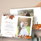 Boho autumn fall 2 photos elegant script wedding thank you card