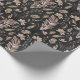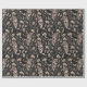 Delicate autumn rust green foliage pattern gift wrapping paper in pastel dusty pink florals with sage green foliage on black. Perfect for a birthday gift, shower gift in the fall.