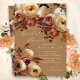 This boho autumn bridal shower invitation features a beautiful collage of cabbage roses, garden roses, ranunculus, berries, apples, and leaves. The invitation is set on a brown background with the date, time, and location of the bridal shower in a tasteful font. The bohemian design and autumnal colours add a touch of whimsy and romance, and the overall design is perfect for celebrating the upcoming bride with your loved ones in a stylish and festive way.