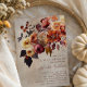 This boho autumn bridal shower invitation features a beautiful collage of cabbage roses, garden roses, ranunculus, berries, apples, and leaves. The invitation is set on a light cream background with the date, time, and location of the bridal shower in a tasteful font. The bohemian design and autumnal colours add a touch of whimsy and romance, and the overall design is perfect for celebrating the upcoming bride with your loved ones in a stylish and festive way.