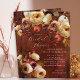 This boho autumn bridal shower invitation features a beautiful collage of cabbage roses, garden roses, ranunculus, berries, apples, and leaves. The invitation is set on a brown background with the date, time, and location of the bridal shower in a tasteful font. The bohemian design and autumnal colours add a touch of whimsy and romance, and the overall design is perfect for celebrating the upcoming bride with your loved ones in a stylish and festive way.