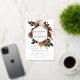 Elegant autumn wedding invitations featuring your names inside of a hexagon-shaped gold foil frame surrounded by watercolor flowers and greenery in muted autumnal colours of ivory, orange, mustard gold, olive green, dusty rose, and brown. The fall floral wedding invitations reverse to display a rich olive green watercolor background. Designed to coordinate with our Boho Autumn Floral wedding collection.
