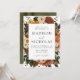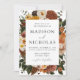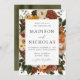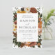 Elegant autumn wedding invitations featuring your wedding details framed by watercolor flowers and greenery in muted autumnal colours of ivory, orange, mustard gold, olive green, dusty rose, and brown. The fall floral wedding invitations reverse to display a rich olive green watercolor background. Designed to coordinate with our Boho Autumn Floral wedding collection.