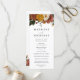 Rustic floral wedding program featuring your names and wedding details with a top border of watercolor flowers and greenery in muted autumnal colours of ivory, orange, mustard gold, olive green, dusty rose, and brown. Personalise the fall wedding programs with your wedding date and location, order of events, and wedding party on the back. Designed to coordinate with our Boho Autumn Floral wedding collection.