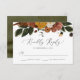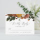 Elegant autumn floral RSVP card featuring a bouquet of watercolor flowers and foliage in earth tone shades of ivory, marigold, burgundy, dusty rose, and olive green. The fall floral wedding RSVP cards feature a beautiful modern calligraphy script with your RSVP date and custom accepts/declines wording. The back of the autumn wedding RSVP displays a rich olive green watercolor background. Designed to coordinate with our Boho Autumn Floral wedding collection.