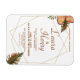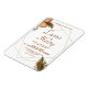 A flexible magnet invitation with painted fall foliage, clean gold line art, and soft earth-inspired tones. A charming autumn piece to complement rustic weddings or boho celebrations.