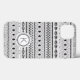 A black and white modern tribal stripe pattern decorates this iphone case. Personalise it with your monogram. Designed for you by Blackberry Boulevard.