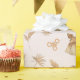 This boho wrapping paper features a blush pink background with baby dress and rattle patterns. Personalise it for your needs. You can find matching products at my store.