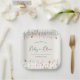 An elegant light cream baby shower paper plate featuring boho watercolors of delicate wildflowers and "Baby in Bloom" in a stylish contemporary script. Personalise with the name of the mummy-to-be and shower date.