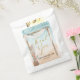 Boho beach wedding favour bags with rustic arbor, elegant gold calligraphy and watercolor ocean shoreline. This beautiful design has a sandy beach, bohemian chic style wedding arch decorated with voile and eucalyptus with a basket of pampas grass and tropical flowers. "thank you" is hand lettered and the template is ready for you to personalise with your name and wedding date. Gorgeous design for a tropical destination wedding, vintage seaside wedding, nautical or summer seaside theme. Please browse my store for the Boho Beach collection, for coordinating invitations, enclosure cards and mailing accessories.