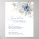 Boho Beach Coastal Blue Wedding Signature Drinks Sign Poster.