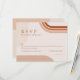 Modern boho wedding RSVP card with arch shapes in terracotta, rust, burnt orange, and dark green, emerald tones.