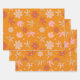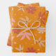 Boho Birds and Flowers Pattern in Orange and Pink Wrapping Paper Sheets