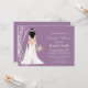 A graceful curtain of pearls and a breathtaking boho bride with black hair in a delicate lace wedding dress, this design is beautifully adorned with a lush bouquet of roses, pampas grass, eucalyptus, and ranunculus on a purple background.