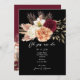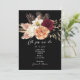 Announce your intimate celebration with our Elegant Rustic Boho Elopement Wedding Reception Invitation. Featuring stunning watercolor flowers in burgundy, peach, and black, complemented by trendy calligraphy script, it sets the stage for a romantic affair. Perfect for couples seeking to share their love story with elegance and rustic charm.