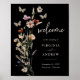 Boho Black Welcome Wedding Poster. This stylish & elegant wedding welcome poster features a gorgeous hand-painted watercolor butterfly and wildflowers arranged as a lovely bouquet. Find matching items in the Moody Black Boho Wildflower Wedding Collection.