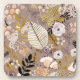 Boho Black White Gold Peach Line Drawn Leaf Floral Coaster