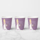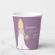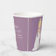This boho-themed paper cup features a graceful curtain of pearls and a stunning boho bride with blonde hair in a delicate lace wedding dress. Adorned with a lush bouquet of roses, pampas grass, eucalyptus, and ranunculus.