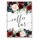 Sophisticated watercolor floral garland shower, birthday, or reception "Coffee Bar" signage featuring burgundy marsala red and blush pink hand-painted header drop border with navy blue accent flowers embellished by botanical laurel and dark red. From the "Boho Bloom" collection, this layout incorporates rich Bohemian wildflowers with radiant blooms and eucalyptus greenery foliage. For other colours or matching products, please visit the JustFharryn Zazzle store, or contact the designer, c/o Fharryn@yahoo.com All rights reserved. #bohochic #zazzlemade