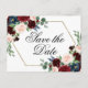 Boho Bloom | Burgundy Red and Navy Save the Date Postcard
