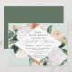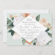Elegant floral bridal shower invitation features a diamond shaped frame of watercolor flowers and foliage in boho desert inspired shades of peach, white, ivory, and sage green. Personalise with your bridal shower details.