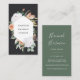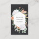 Elegant floral vertical business cards feature your name or company name in modern lettering flanked by a geometric border of pastel watercolor flowers and botanical foliage in desert inspired earth tone shades of peach, sage green, white and ivory. Add your full contact information to the back.