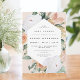 Elegant floral gender neutral baby shower invitation features an elongated hexagonal frame of watercolor flowers and foliage in boho desert inspired shades of peach, white, ivory, and sage green. Personalise with your baby shower details in modern lettering.