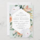 Elegant floral gender neutral baby shower invitation features an elongated hexagonal frame of watercolor flowers and foliage in boho desert inspired shades of peach, white, ivory, and sage green. Personalise with your baby shower details in modern lettering.