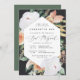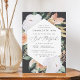 Elegant floral bat mitzvah invitation features an elongated hexagonal frame of watercolor flowers and foliage in boho desert inspired shades of peach, white, ivory, and sage green. Personalise with your bat mitzvah ceremony and party details in modern lettering.