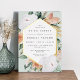 Elegant floral bridal shower invitation features an elongated hexagonal frame of watercolor flowers and foliage in boho desert inspired shades of peach, white, ivory, and sage green, and finished with gold foil trim. Personalise with your bridal shower details in modern lettering.