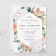 Elegant floral bridal shower brunch invitation features an elongated hexagonal frame of watercolor flowers and foliage in boho desert inspired shades of peach, white, ivory, and sage green. Personalise with your bridal brunch details in modern lettering.
