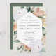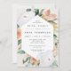 Elegant floral bridal shower brunch invitation features an elongated hexagonal frame of watercolor flowers and foliage in boho desert inspired shades of peach, white, ivory, and sage green. Personalise with your bridal brunch details in modern lettering.