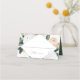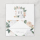 Boho chic floral place card or table card design features a geometric border of watercolor foliage and flowers in desert inspired shades of pastel peach, sage green, ivory and white. Space provided for guest name and table number. Cards reverse to reveal a matching floral frame with your initials and wedding date inside. Designed to match our Boho Blooms wedding and event collection.