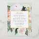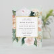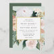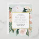 Elegant floral wedding invitation features your wedding details in modern lettering, set in a square frame of pastel watercolor flowers and botanical foliage in desert inspired earth tone shades of peach, sage green, white and ivory. Gold foil trim completes the look for a luxe touch.