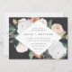 Elegant floral wedding invitation features your wedding details in modern lettering, set in a geometric diamond shaped frame of pastel watercolor flowers and botanical foliage in desert inspired earth tone shades of peach, sage green, white and ivory.