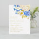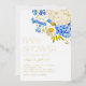 Invite guests to your event with this customisable gold foil baby shower invitation. It features watercolor bouquet of blue and white hydrangeas with floral and greenery accents. Personalise this hydrangea baby shower invitation by adding name, time, date and other event details. This botanical baby shower invitation is perfect for spring and winter baby showers.