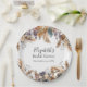 A lovely boho botanical palm leaves and pampas grass bridal shower paper plates with blues and browns. Great for all seasons and trendy.