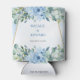 The boho watercolor dusty blue flowers, sage eucalyptus, greenery, and gold glitter frame design on these Wedding Can Coolers adds a touch of elegance and nature-inspired charm to any wedding celebration. The combination of soft pastel colours and botanical elements creates a romantic and trendy look that is perfect for a bohemian-themed wedding. The gold glitter frame adds a touch of glamour and sophistication, making these Can Coolers a stylish and functional accessory for keeping drinks cold at any outdoor or indoor wedding event.