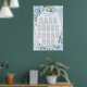 This Boho blue floral eucalyptus and silver seating chart poster is the perfect addition to any wedding ceremony. The poster features a beautiful and intricate design of blue floral patterns, delicate eucalyptus leaves, and elegant silver accents.