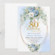 Boho Blue Floral Peony Gold Frame 80th Birthday Invitation