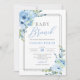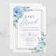 Boho blue floral silver glitter frame rustic baby brunch invitation, Contact me for matching items or for customisation, Blush Roses ©