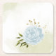 Boho blue flowers green leaves botanical square paper coaster