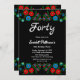 Boho Blue Red Roses Romantic Floral 40th Birthday Invitation